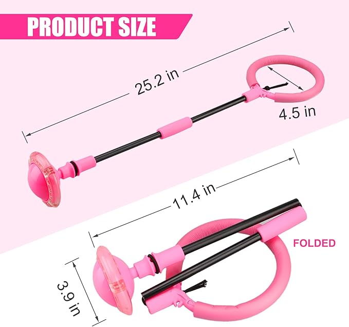 Ankle Skip Ball for Kids - Foldable Flash Wheel Skip Ball, Outside Game Toys for Kids & Adults, Gift for Boys & Girls Age 5 6 7 8 9 10 Years Old, Pink