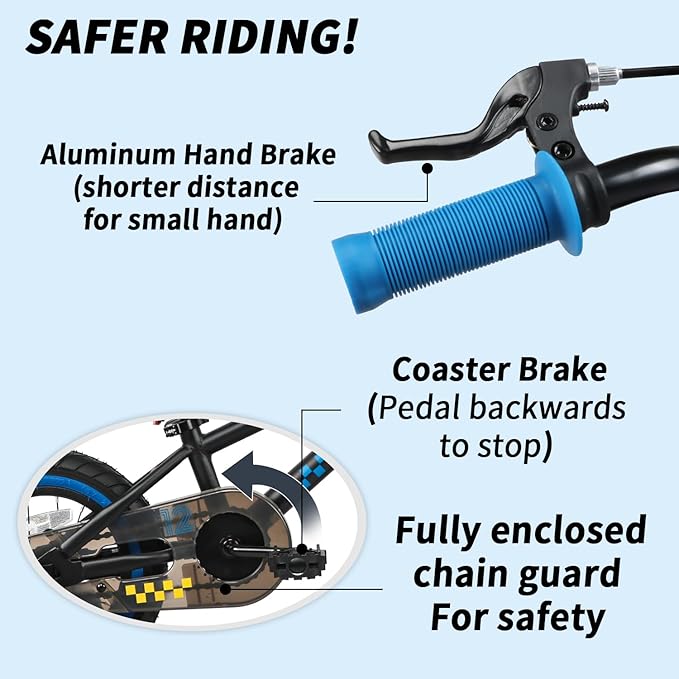 - 【Safety First】 Equipped with a hand brake and Coaster Brake, this toddler bike offers strong stopping power for young riders. The enclosed chain guard protects little hands from moving parts, ensuring worry-free rides.