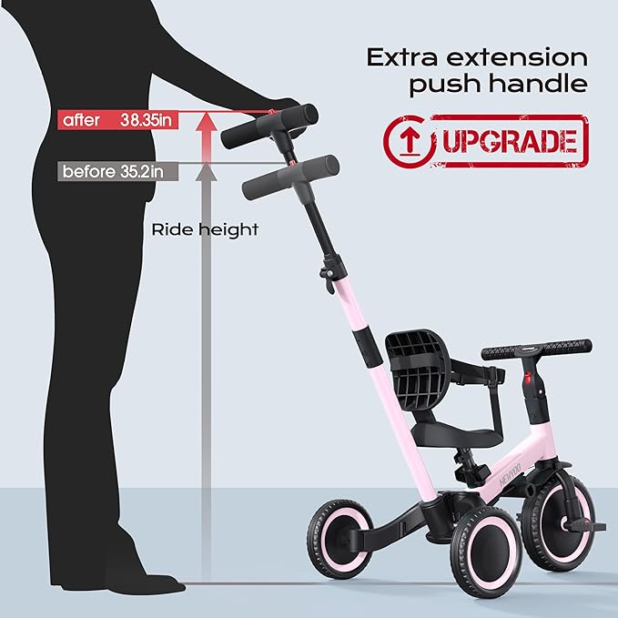 - Easy Access to Use: Much easier to assemble handlebar and wheels. Press buttons to convert it into different modes. Suitable for 1-3 years kids under 43.3 inches(110 cm).