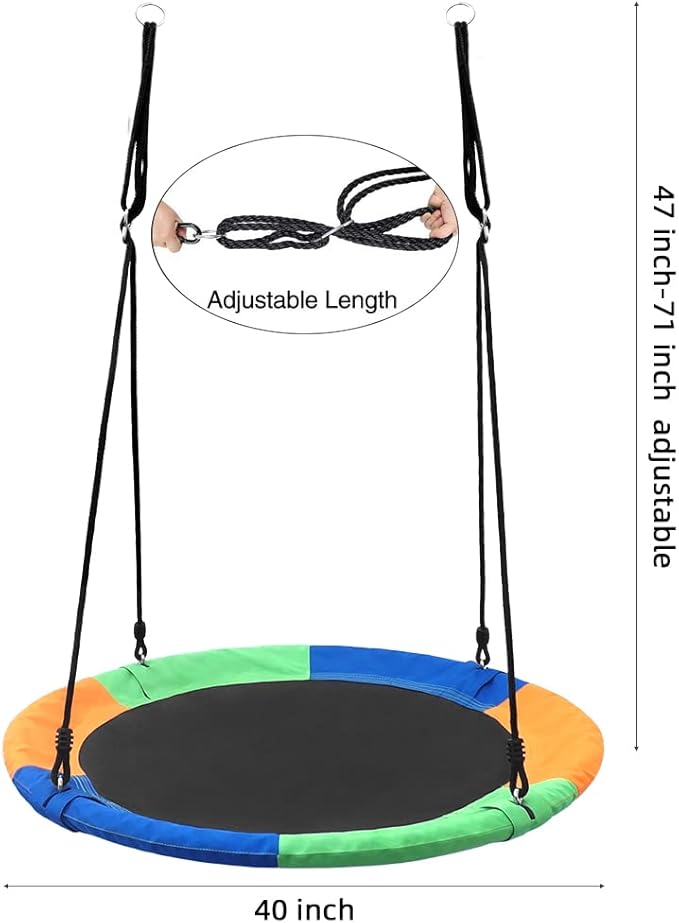 Saucer Tree Swing Seat for Kids 40 Inch Outdoor Round Tree Swing for Children Heavy Duty Safe Durable Easy Install for Backyard Multicolor