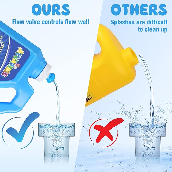 - 【Flow Control Valve】Unlike other bubble liquids, we have designed a valve at the top of the bottle to control the flow rate and allow the bubble liquid to pour out in a more controlled manner.