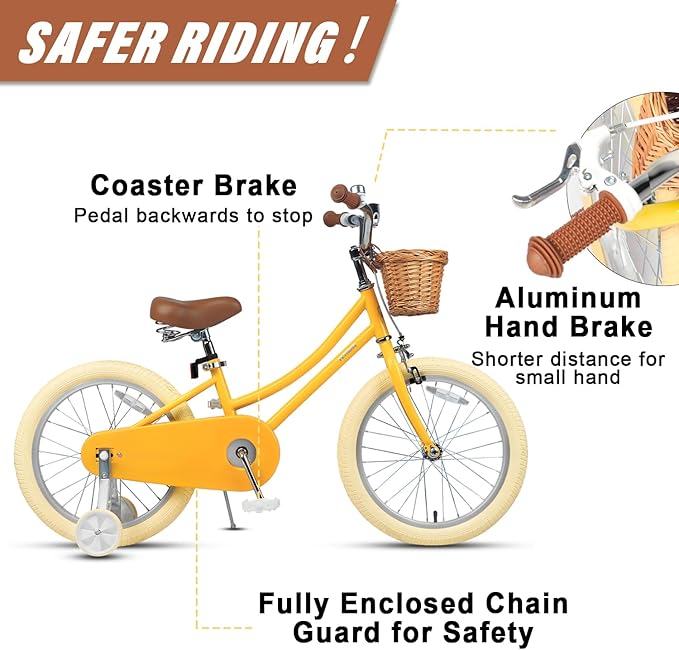 - 【Safe & Durable】- Coaster brake makes it easy to learn. Enclosed chain guard prevents your little one touching the chain. Durable high tensile steel construction provides long-lasting reliability, backed by a LIFETIME warranty on the frame.