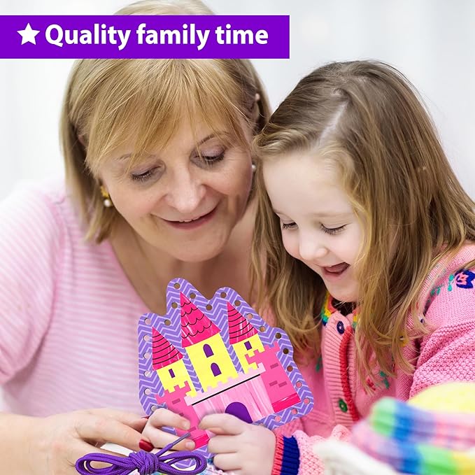 - ๐ธ Make 5 Easy Projects ๐ธ : Make a total of 5 beginner Lacing Art & Craft kit with princess, unicorn, castle. Tools and Instructions also included for the craft. Train your kids with hand-eye coordination and color matching skills together.