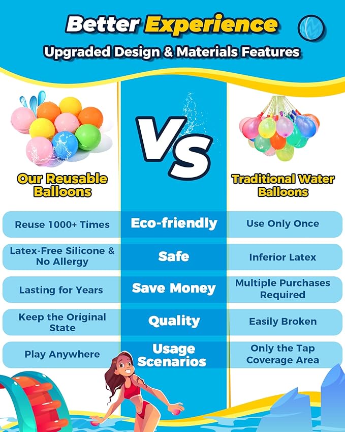 - ♻ Reusable Design & Safe Material: toys for Ages 8-13 reusable water balloons made from safe, odorless silicone and upgraded magnetic technology, can be reused for many years. Providing endless fun for your kids to play with friends and family playing together outdoors. These refillable water balloons are eco-friendly and a safer alternative to traditional water balloons.