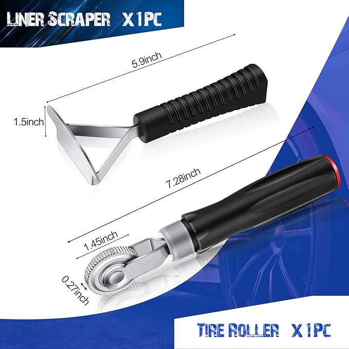 - Helpful Assistants: the tire patch roller is made of quality iron material, sturdy and sustained, can help you apply even penetration pressure to remove trapped air; The liner scraper is helpful for scraping coverings