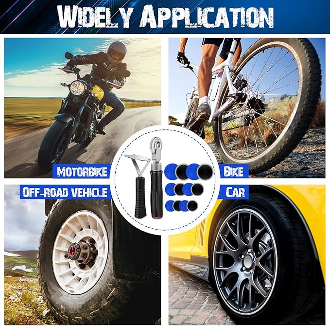 - Easy to Use: you just need to clean the dirt on the car tire, and polish the worn area, and then apply glue, paste tire patches tools, and apply sealant finally; Note: the glue and sealant are not included in the package