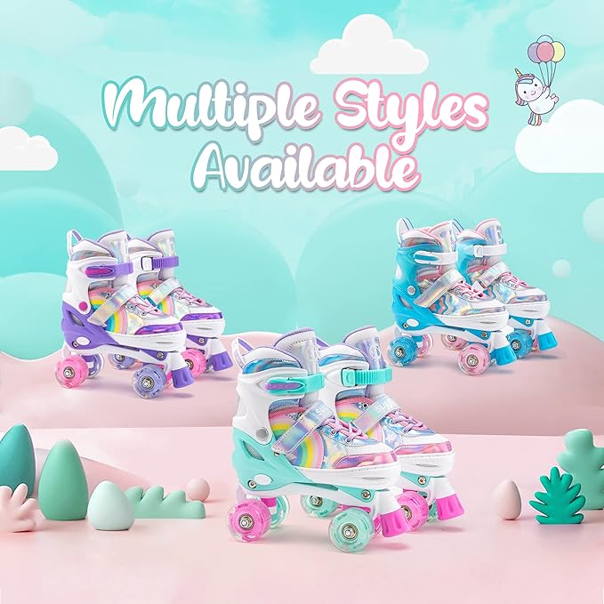 SULIFEEL Rainbow Unicorn 4 Size Adjustable Light up Roller Skates for Girls Boys for Kids