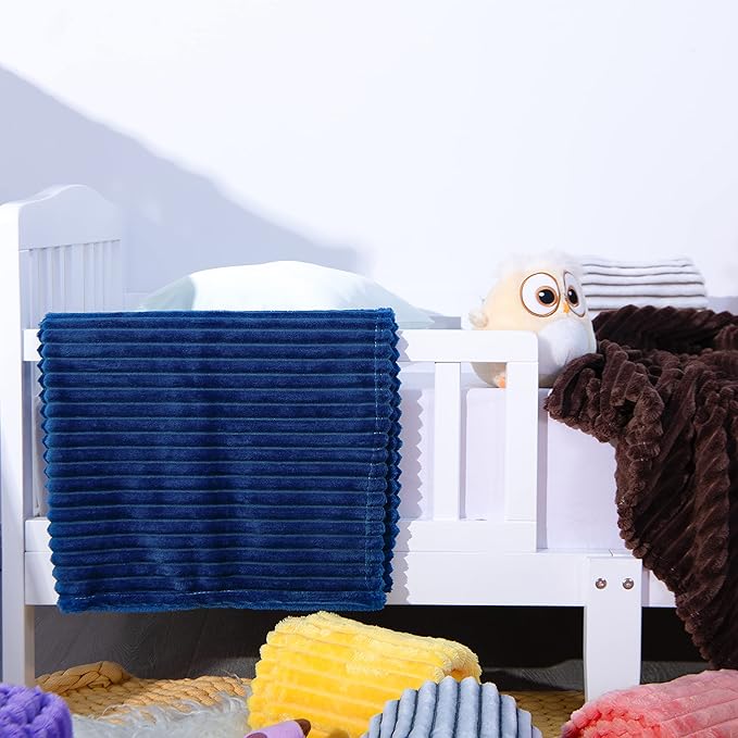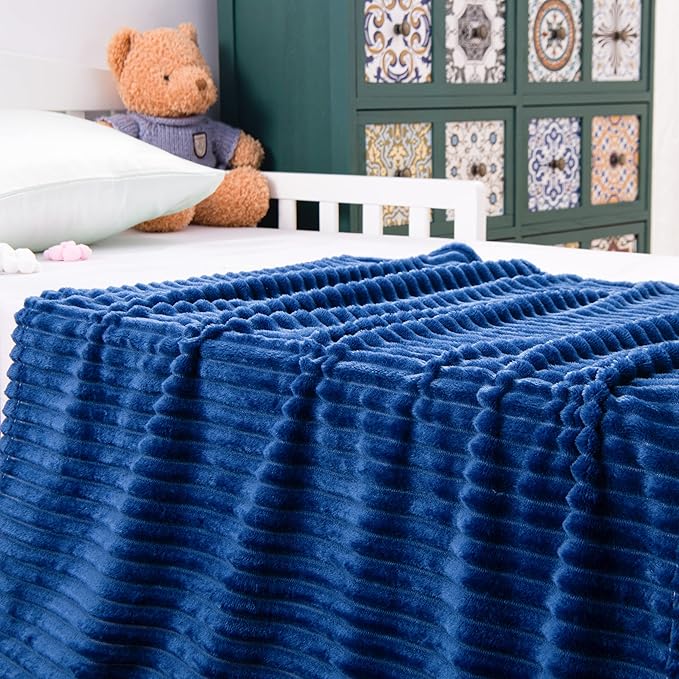 NTBAY Plush Flannel Oversized Baby Blanket, 50X60 Inches Soft and Warm Toddler Blanket with Striped Texture Nursery Bed Blanket for Stroller, Crib, Travel, Baby Gift, 50"x60", Navy Blue