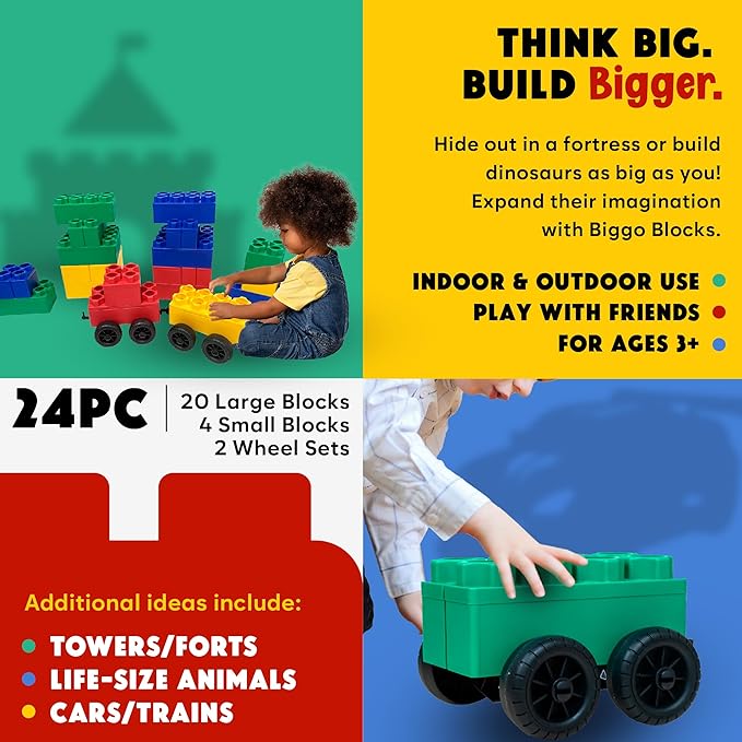 - Step into a world of endless possibilities with Biggo Blocks Toddler Building Blocks. From building towering forts to embarking on deep-sea voyages, these versatile big building blocks for kids inspire creativity both indoors and outdoors.