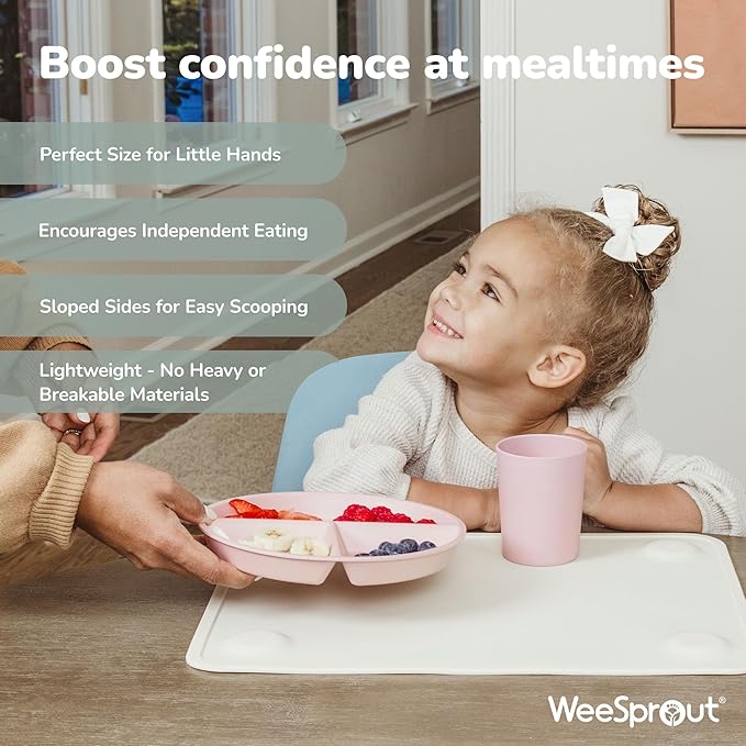 - SET OF 4 KIDS PLATES: Expertly sized for little hands and mouths, these plates feature a smart divided design that keeps foods separate for picky eaters, promoting healthy portion control and self-feeding independence.