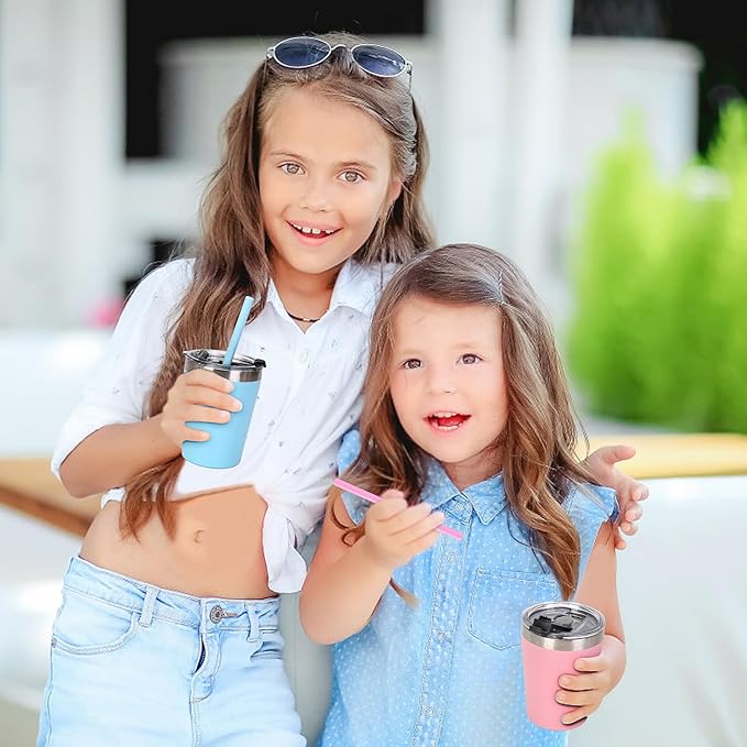 Toddler Straw Cups, 8oz Stainless Steel Insulated Tumblers with Lids and Straws, Powder Coated Double Wall Vacuum Kids Drinking Sippy Cups for Baby Boys Girls, 4 Pack