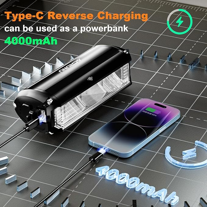 - CHARGING INPUT & OUTPUT: In addition to the normal USB input rechargeable function,this bicycle light also has a output function.It has a power bank function that can charge your phone.This is a very important when you are riding outdoors