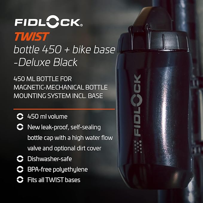 - COMPLETE SET WITH BIKE BASE INCLUDED: This package comes with the Fidlock TWIST bottle and the matching bike base mount, offering a ready-to-use hydration system straight out of the box. Installation is quick and straightforward using standard bottle cage screws.