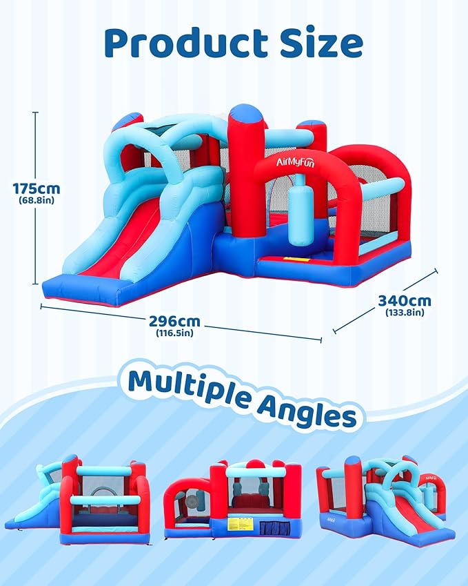 AirMyFun Inflatable Bounce House, Bouncy House with Slide,Indoor Outdoor Bounce House with Ball Pit,Basketball Hoop,Target Balls and Boxing,Inflatable Bouncer for Party