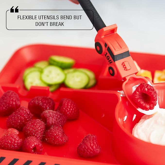 - ENCOURAGES KIDS' INDEPENDENCE: This fun dinnerware set encourages kids to take more initiative and independence at mealtime. It stimulates their imagination while creating positive associations with food and kinesthetic development of utensil use.