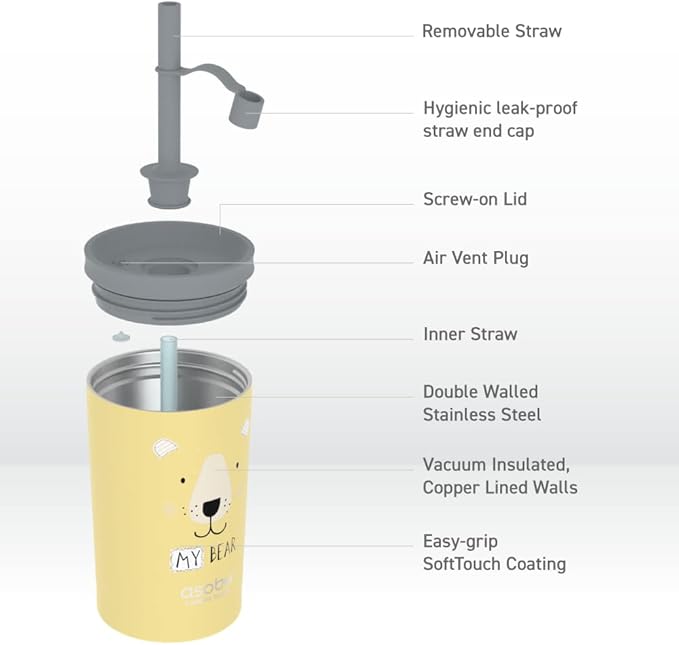 asobu Stainless Steel Kids Tumbler with Flexible Straw Lid | Insulated Water Bottle | Reusable Travel Cup 12 Ounce (Yellow)