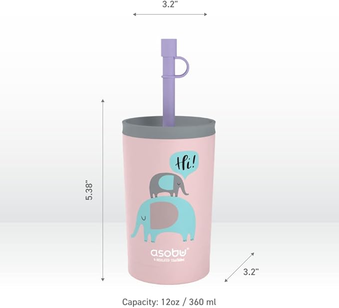 asobu Stainless Steel Kids Tumbler with Flexible Straw Lid | Insulated Water Bottle | Reusable Travel Cup 12 Ounce (Pink)