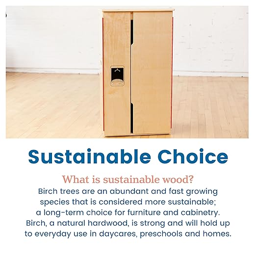 - Kitchen Playset: Organizing food and snacks has never been more fun with the wooden refrigerator designed to inspire imagination during pretend play in a classroom or playroom