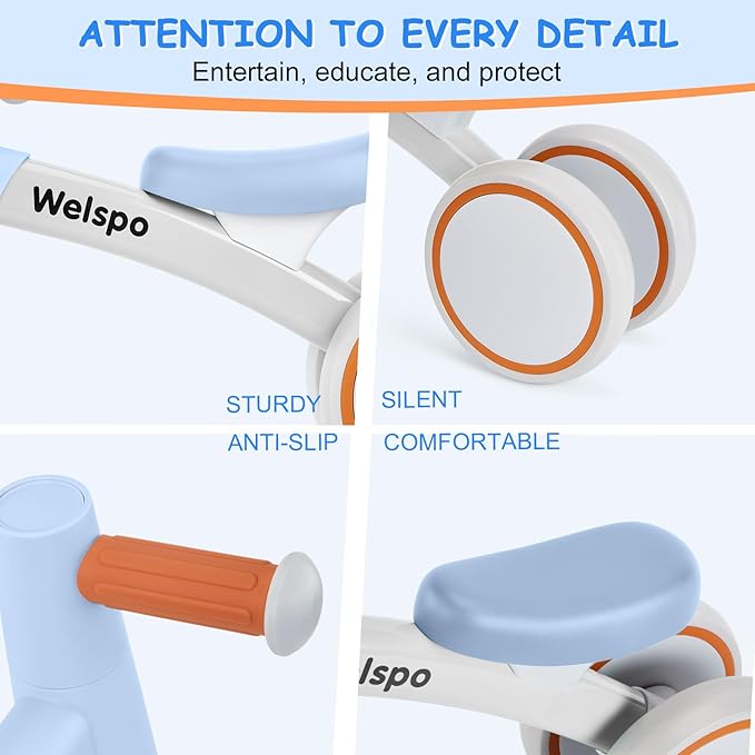 - đź’—Develop Kids Balance & Coordination - The infant balance bike is designed for toddlers ages 12-24 months. It helps to develop babies' balance, steering, coordination which also increases their confidence. These make Welspo 3 wheel bikes your top picks for the best ride on toys for 1 year old baby. Awesome to help children learn to Walk!!!