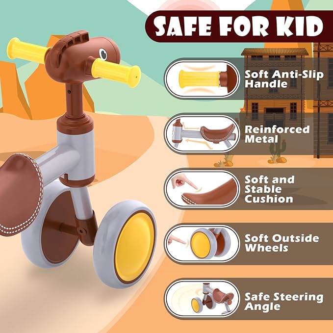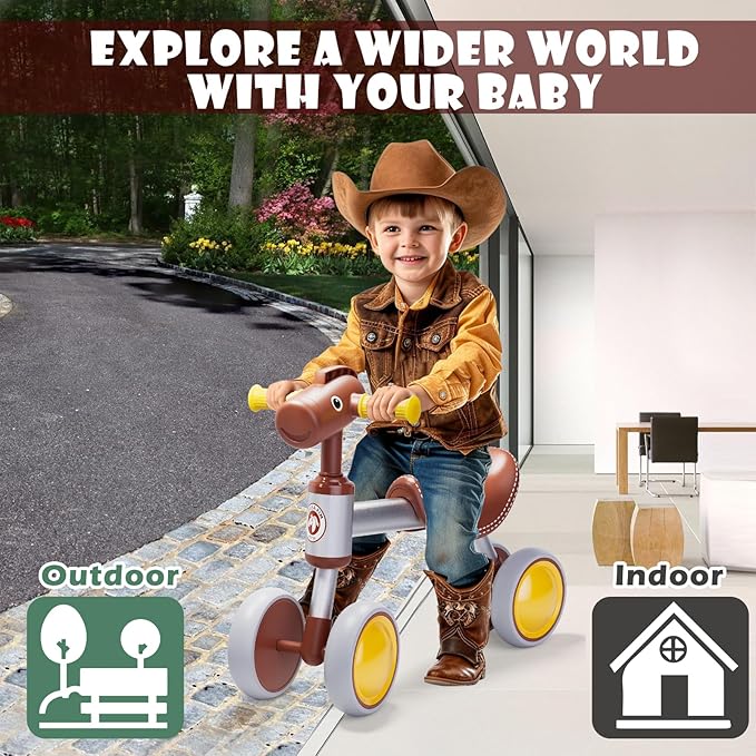 - [Growing Through Fun] Baby Balance Bike can bring fun and joy to babies. Recommended for ages 12-36 months, it helps babies develop balance, steering, coordination and gain confidence at an early age. This baby balance bike toys for 1 year old boys girls toys gifts, suitable for indoor and outdoor play, exercise the baby strong body, so that the baby thrives.