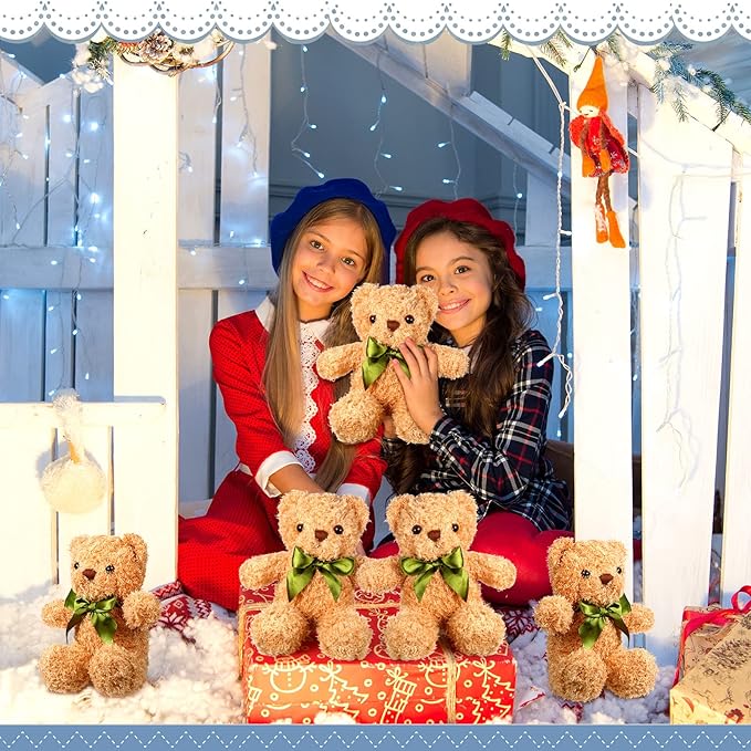 - Delicate Design: each plush bear adopt plush design and is attached with a green bow at the neck, cute and lovely, fully stuffed material makes it sit up nicely, which can make you feel happy and relaxed every time seeing it, suitable for bedroom, game room and so on, hug with it for relaxation