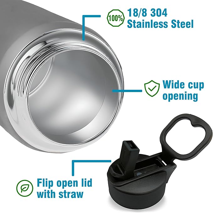 - WATER BOTTLE WITH STRAW: Wide mouth and flip-top lid with straw for easy to drink, 100% leak proof, suitable for school work and sports travel.