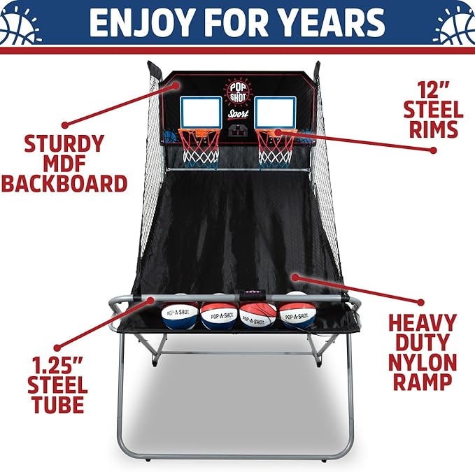 - THE ULTIMATE BASKETBALL ARCADE GAME: From the pioneers that created the original Pop-A-Shot basketball game comes the all-new Dual Shot Sport with revolutionary technology and multiple game options.