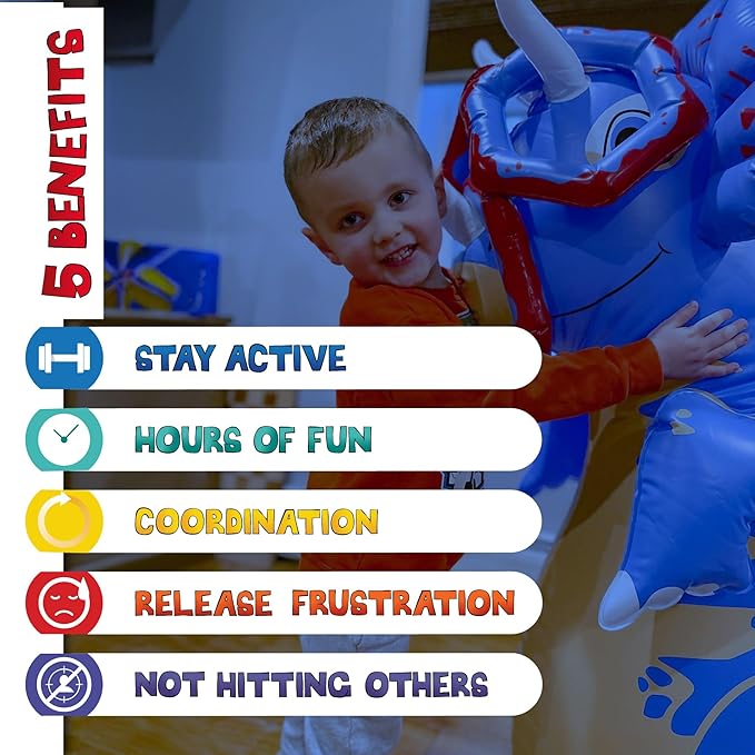 - Multifunction: With this punching bag, children can punch and kick for fun and imaginative play. Get your kids away from the television and video games for some action with our kids boxing bag! This inflatable dinosaur is a standout choice among dinosaur toys, perfect for active fun during any dinosaur party. Whether you're hosting a birthday or just looking for dinosaur party supplies, this triceratops toy brings excitement to playtime. It's also an awesome addition to play therapy toys.