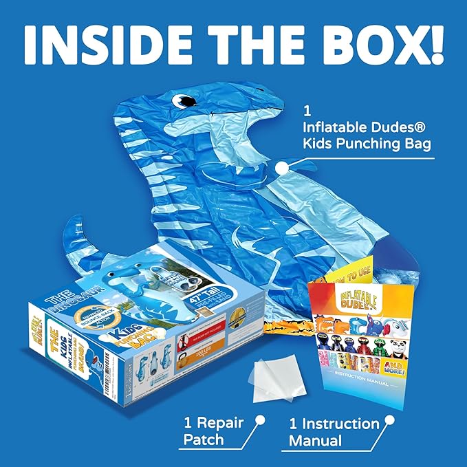 - All of our punching bags are pre-filled with sand in the base. This makes them the ideal dinosaur gifts for girls and boys alike. Our leak-proof bottom and double-lock air valve makes Inflatable Dudes the top choice for your kids to enjoy. Easy to Set Up: Ready to play in minutes! Perfect for toddler boxing, interactive play, or handing out as dinosaur birthday favors. Also, it’s the perfect child punching bag for kids to develop strength and coordination.