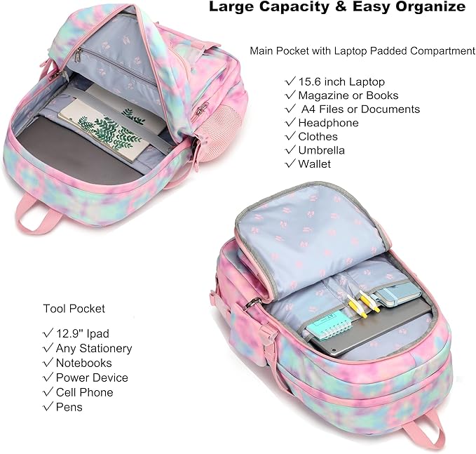Hidds Laptop Backpacks 16 Inch School Bag College Backpack Anti Theft Travel Casual Daypack Bags Cute Bookbags Large Colorfull Carry on Back Pack for Teens Girls Women Students (Tie-Dye Pink)