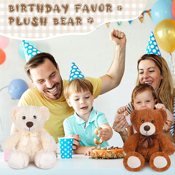 Zhanmai 12 Pcs 14 Inch Bear Stuffed Animal Bulk Operation 2025 Graduation Gifts Bulk Plush Stuffed Bear for Bridal Anniversary Shower Gifts(Light Brown, Dark Brown, White, Grey)