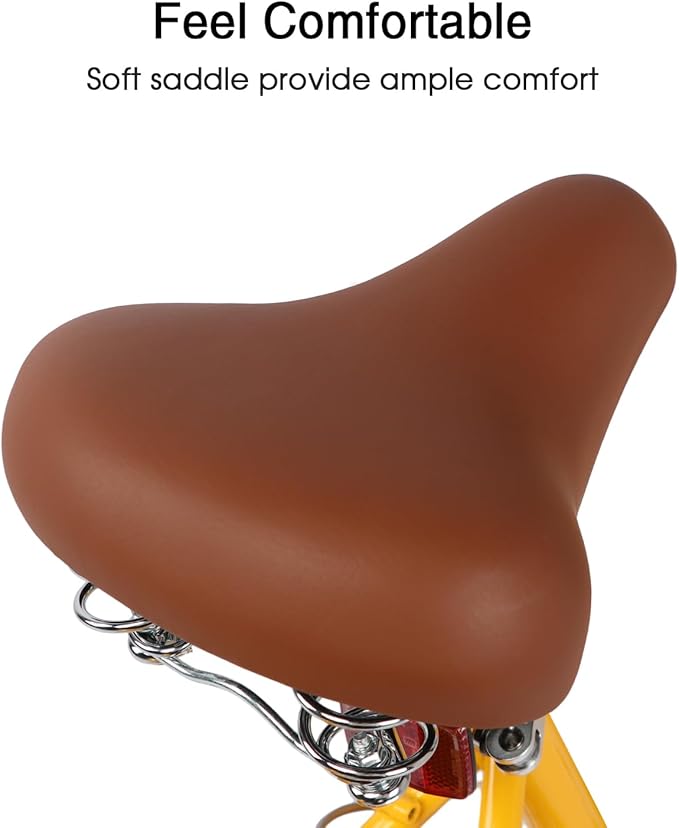 - 【Comfortable and Practical】 A classic cruiser made for maximum comfort. An alloy quick release seat for easy adjustments. This city bike features a front wicker basket with room.
