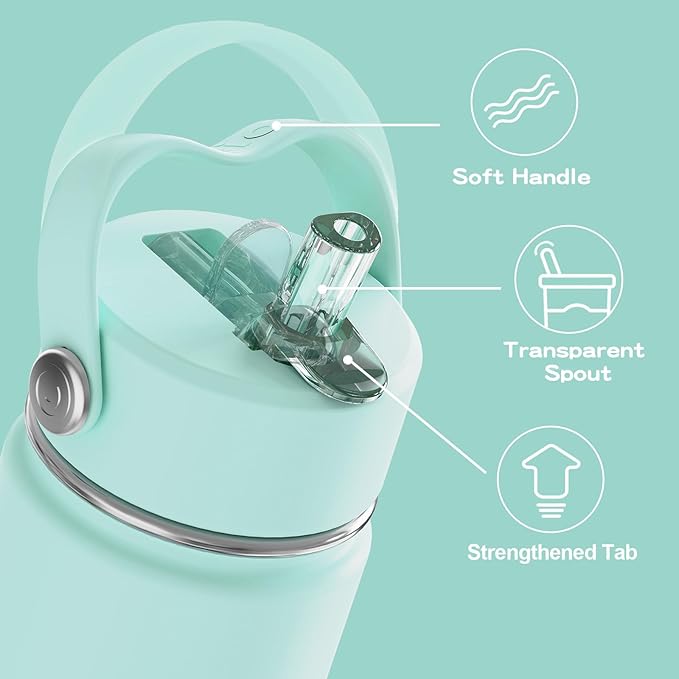 - Dishwasher Safe & Transparent Spout: Nothing is more comforting than seeing our children using sanitary hygiene bottles. A transparent spout helps parents to see through and avoid dirt hiding inside. Cleaning the straw and the spout with the small brush is super easy. Both the body and straw cap are dishwasher safe. The color prints won’t fade or peel.