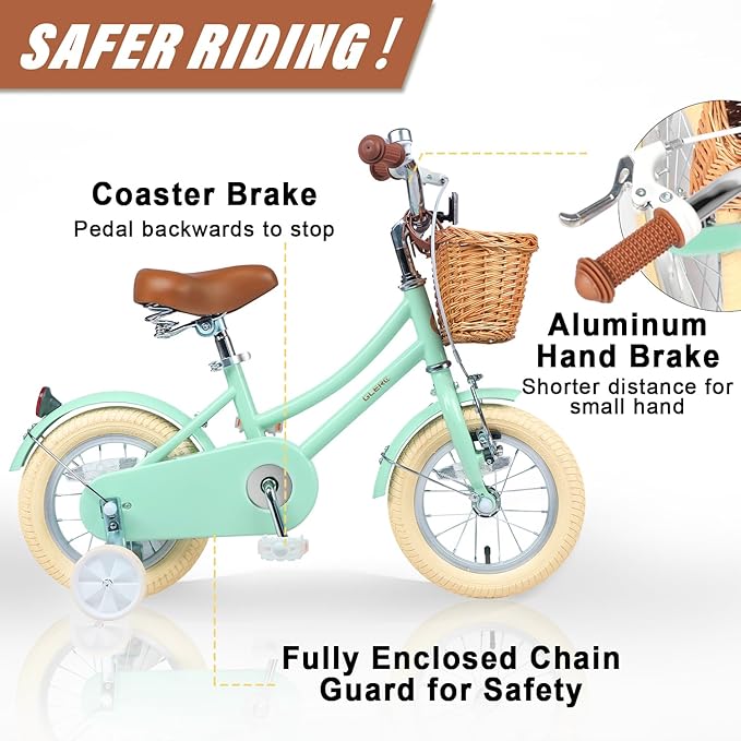 - 【Retro Style】The girls bike features a vintage-style metal frame and brown faux leather saddle, creating a unique and eye-catching look that will make your child a distinctive retro little rider.