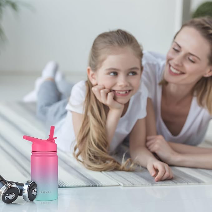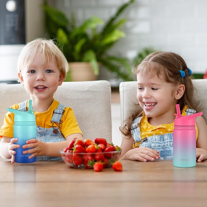 - COLORFUL & PRACTICAL:It’s important for kids to drink water to maintain adequate hydration and reduce consumption of sugar-sweetened beverages. Mininoo toddler water bottle with straw uses only food grade, BPA Free, recyclable materials for our insulated water bottles,This insulated water bottle for kids has a double wall design to keep drinks cold plus vacuum insulation and powder coating to keep it sweat-free and easy to grip