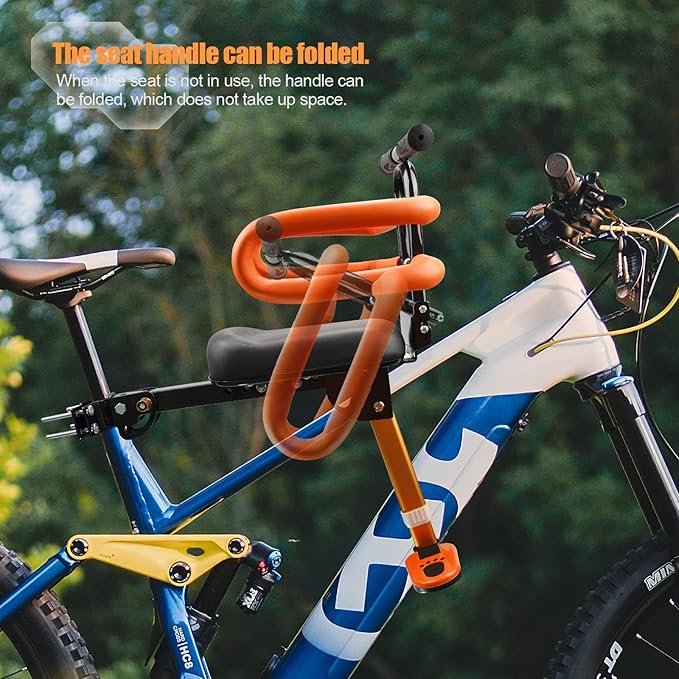 - 【Easy to Carry and Install】The front mount bike child seat is foldable and retractable, so you can easily fold it up in a bag or store it anywhere.It also comes with a set of installation tools and installation instructions, making installation simple and quick.