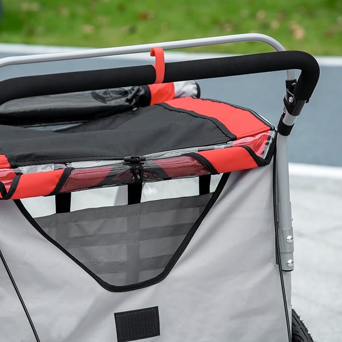 Aosom 2-in-1 Walk/Ride Child Baby Bike Trailer for Kids 2 Seater, High-Visibility Bike Stroller for Toddler Wagon, Weather-Strong Double Bicycle Trailer Accessory for Kids