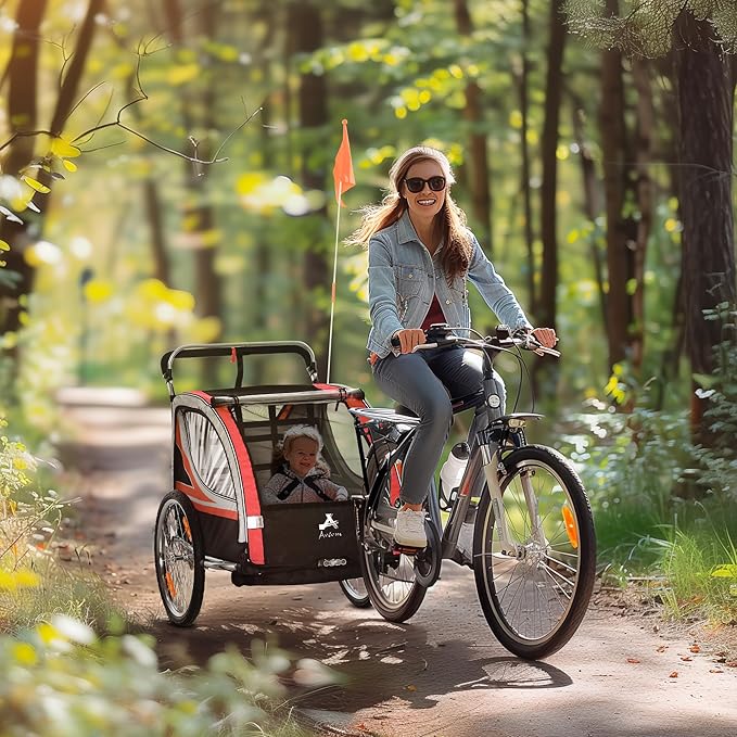 - Stroller & Trailer: Made for walking and riding, this trailer/stroller features a handle for when it's not attached to your bicycle, letting you park and continue on foot whenever you find yourself ready. If there are non-bikers in your household, they can get use out of this unique 2-in-1 too. It offers space for 2 kids, accommodating playdates or siblings. A buddy can make the difference between an okay activity and a great activity.