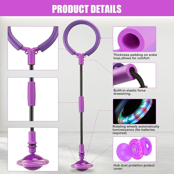 - SUPER COOL FLASH WHEEL: The ankle skip ball has a built-in color flash wheel, no need to install batteries, during the movement of the ball, using the power of electromagnetic induction, it will automatically produce a dazzling multi-color light show