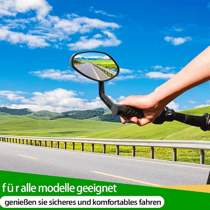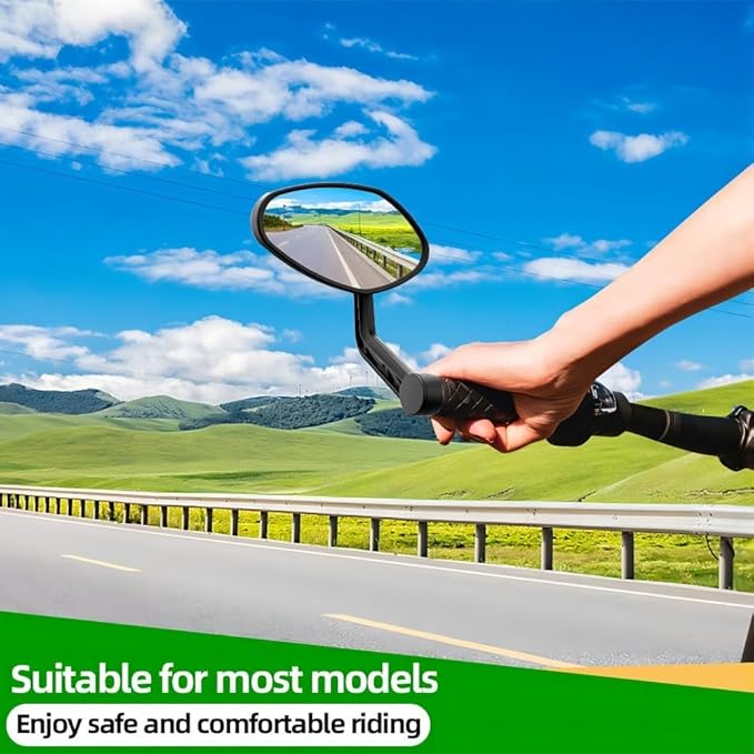 - 【Wider field of view】: Bike Bar End Mirror is designed with adjustable 360°rotation, so that you can adjust the angle to every direction which is suitable for you. The HD automotive grade convex glass bike mirror has extended mirror arm and bigger mirror surface, which gives you a higher riding safety feeling.