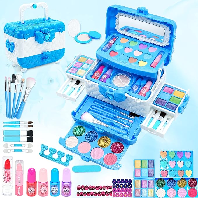 - Kids Make Up Teenagers Ideal Girls Gifts: This washable children's cosmetic case kit is very suitable for beginners and kids to dress up. It is an excellent gift for aged 4 5 6 7 8 9 10 11 12 girls who always want to make up. It is very suitable for girls' birthday parties, role plays, parent-child activities, school performances, etc., so that they can have their own makeup.