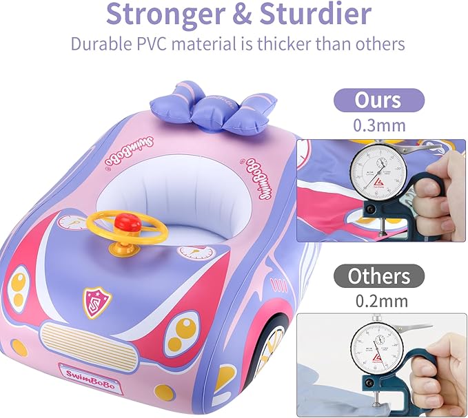 Swimbobo Toddler Pool Float Inflatable Car Baby Swim Float with Adjustable Sun Canopy and Safety Seat Pool Toys for Kids 3+ Years Old