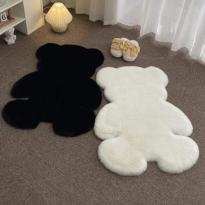 - Fluffy Faux Fur Rug: This 6x8 feet bear shaped area rug is crafted from high-quality, durable faux rabbit fur, boasting an extra thick and irresistibly soft texture that provides a superior fluffy hand-feel. Odorless and non-shedding, this room bedside rug offers a comfortable surface for relaxation or even sleep, while its soft fluffy material is safe for children and pets.