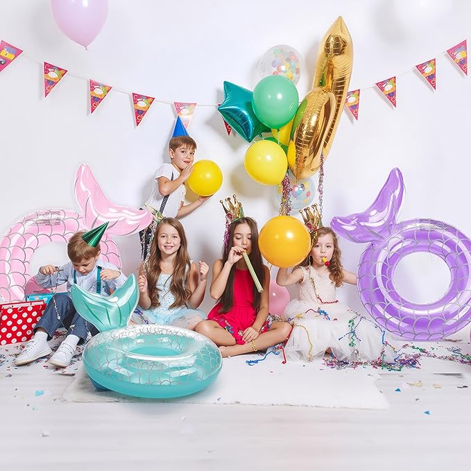 HeySplash Pool Floats Kids, Inflatable Swimming Ring Mermaid Tail Shaped Swim Tube Floaties, Summer Water Fun Beach Party Swimming Pool Toys for Kids Children Water Activities, Purple