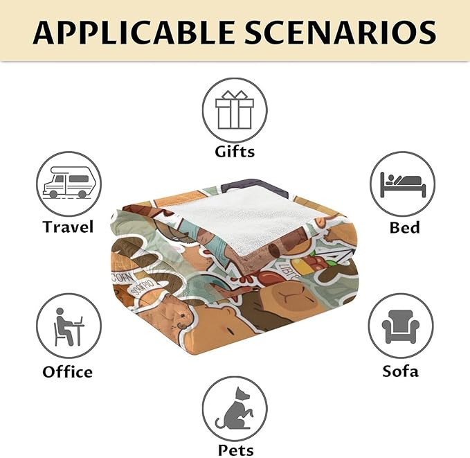 - Soft Comfortable Blanket Material: Our throw blanket made of soft flannel material. This plush capybara throw blanket is cozy fuzzy soft, durable, warm and lightweight. Neat stitches and printed with vibrant colors. The cozy throw blanket is wrinkle and fade resistant, doesn't shed, suitable for all seasons.