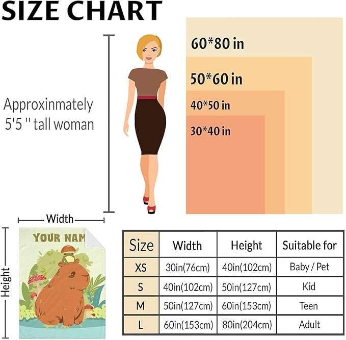 - Ideal Capybara Gifts: It is a great holiday gift idea for girls, boys, kids, teens and adults. Every fuzzy blanket has been created by our talented designer. Capybara blanket can customize a name/text, we will make a personalized name blanket for you.