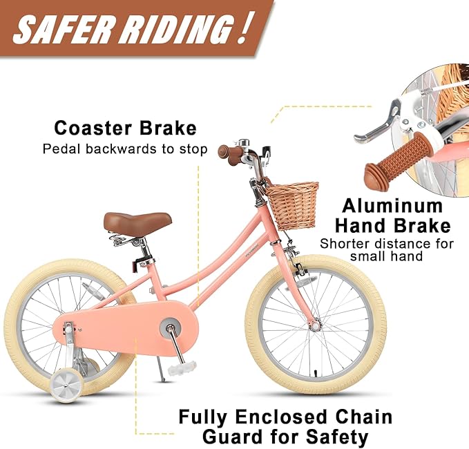 - 【Safe & Durable】- Coaster brake makes it easy to learn. Enclosed chain guard prevents your little one touching the chain. Durable high tensile steel construction provides long-lasting reliability, backed by a LIFETIME warranty on the frame.