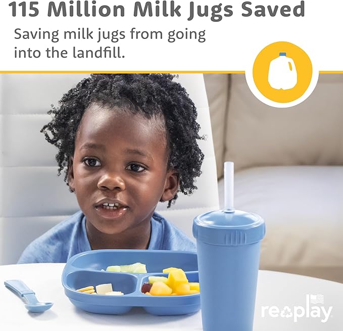 - Sustainable and Reliable: Re-Play's divided plates for adults and kids are made in the USA from recycled milk jugs, making a positive contribution to a more sustainable environment