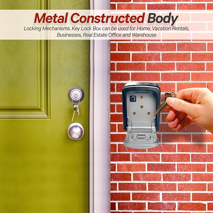 - šInstall our Wall Mount Key Lock Box easily with four screws. Use it indoors or outdoors for convenient and secure key access.