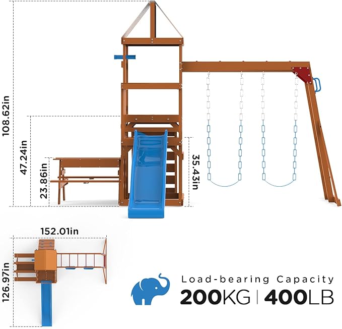 - PREMIUM CEDAR: Swing set is made of high-quality cedar; It has good waterproof, anti-corrosion, and anti-crack functions, suitable for any weather; please check that your backyard can accommodate this product before purchasing